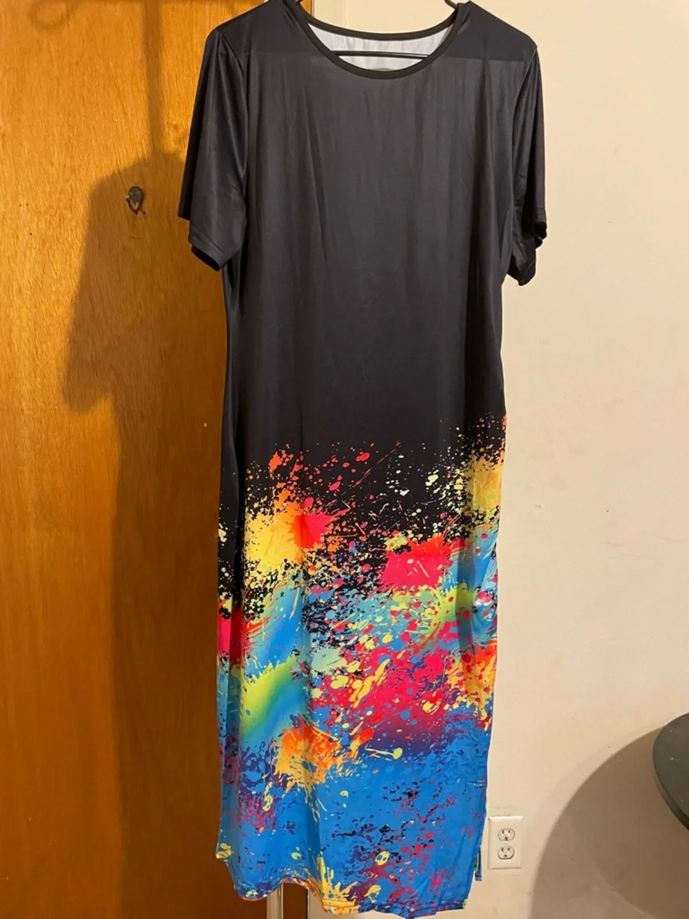 Washed but never worn. One side has a draw string to customize the slit. No pockets. There is no size label on the dress, but the dress is a size LARGE.