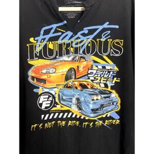 Fast and Furious XXXL T Shirt Black V Cut-out Neck Short Sleeve Y2K Vintage