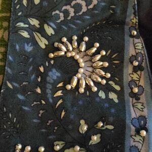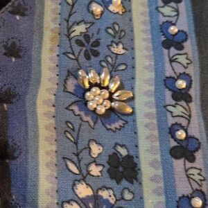 blue floral print fabric with beaded details