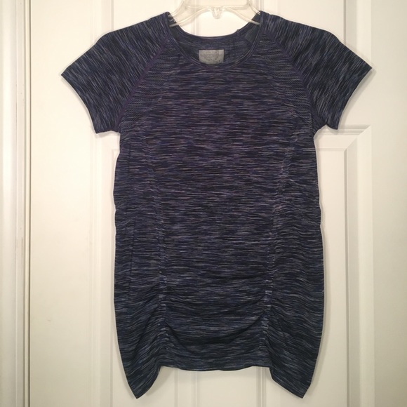 This spacedye tee is so perfect for working out in! It has ruching in all the right places and an unstinkable fabric for those extra intense workouts! The material is super soft and it is in perfect condition!