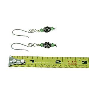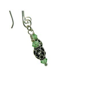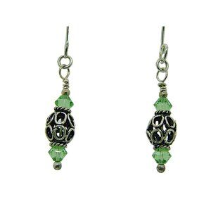 Fat Dog Silver Beads & Swarovski Peridot Green Crystals Drop Dangle Earrings