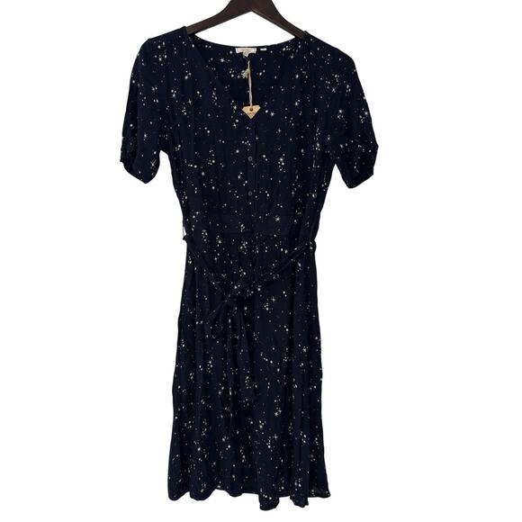 Fat Face Calla Lunar Sky Dress Women's US Size 8 Navy Blue Star Print Tie Belted
