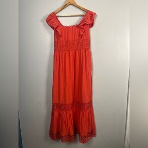 Fat Face Coral Pink Hibiscus Lace Maxi Dress size 4 copper & black