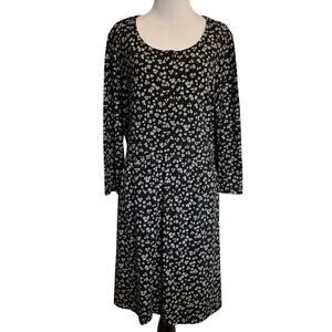 Fat Face Daisy Breeze Nina Dress Womens Size 14 Black Floral Pockets Long Sleeve