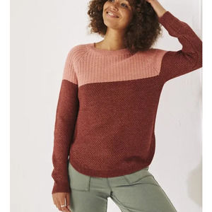 Fat Face Emmy Colorblock Long Sleeve Pullover Knit Jumper Sweater Rose Pink 10