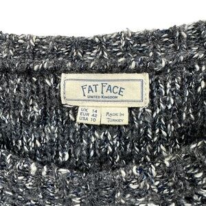 Fat Face Gray with White Speck Oversized Soft Crewneck Long Sleeve Sweater, 10