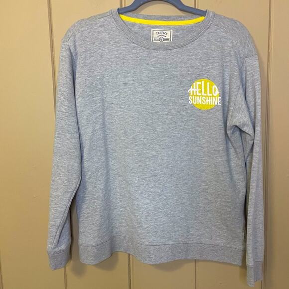 Fat Face Hello Sunshine gray sweatshirt. US 2 UK 6 20” pit to pit 26” sleeve 23.5” length Gently pre-owned. Excellent condition