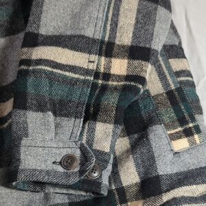 Embrace the perfect blend of style and comfort with this Fat Face lightweight heavy duty plaid shirt jacket. Crafted in a versatile gray and green color palette, this jacket is ideal for layering during cooler weather. Its lightweight design makes it a practical choice for outdoor adventures or casual outings. this is a beautiful heavy shirt/ light jacket I actually bought for myself but I can't fit into it anymore, I have worn it like 3 times so my loss is your gain, this is British design, United Kingdom, clean, warm, sharp looking, absolutely love it and the comi but just can't use it anymore. thanks