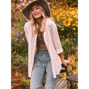 Fatface Linen Viscose Striped Button Up Tunic Billie Shirt
