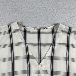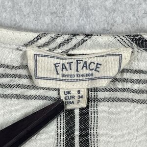 Fat Face Shirt Womens 2 Beige Black Check Tie Waist Top Casual V Neck Minimalist
