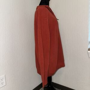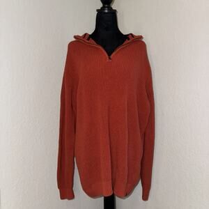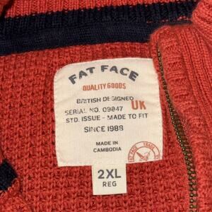 Fat Face Sweater Men 2XL Red Waffle Knit Cotton Long Sleeve Quarter Zip Pullover.