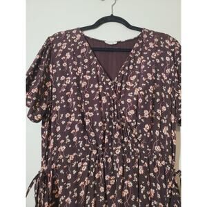 Fat Face Womens 12 Maxi Dress Brown Floral Large V-neck Drawstring adjustable Ties Waist Viscose Long dress Gently used without flaws