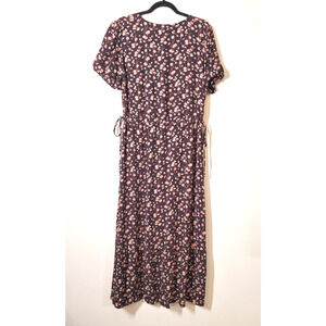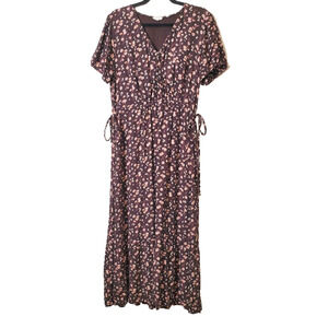 Fat Face Womens 12 Maxi Dress Brown Floral Large V-neck Drawstring Waist Viscose