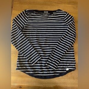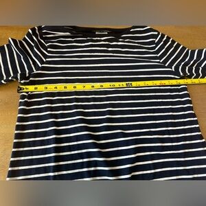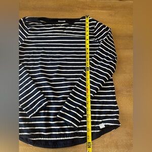 Blue and white striped top with boat neck