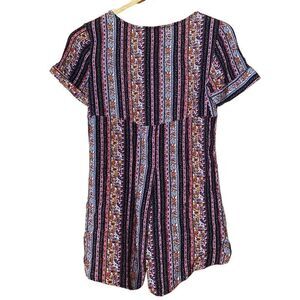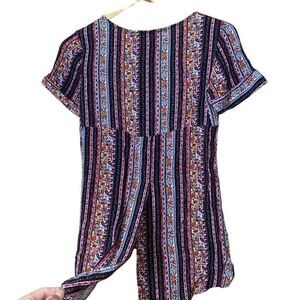 Fat face multi color striped ditsy floral short sleeve tunic top size 2. Ditsy floral and lace detail with single chest pocket and a back slit. Cottagecore prairie and boho vibes!