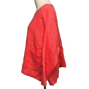 FatFace 100% linen long sleeve pop over tunic top coral salmon orange size 12