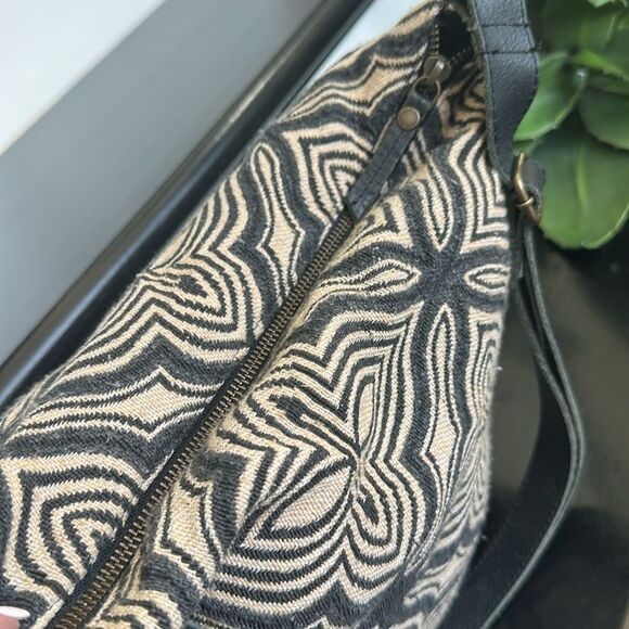This Fat Face shoulder purse blends effortless style with practicality, making it the perfect bag for the season ahead. Crafted with a striking black and beige geometric fabric exterior and black genuine leather strap accents, it offers a unique, boho-inspired look that works year-round. The adjustable strap allows for comfortable shoulder or crossbody wear, and the exterior front zip pocket adds both function and style. Inside, you’ll find a roomy main compartment with a secure zip closure and a Fat Face logo tag (established 1988) for authenticity.