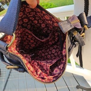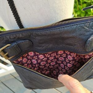 FatFace Genuine Leather Navy Crossbody Bag Purse Classic, Buckles, Zipper Boho