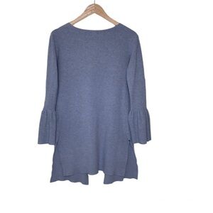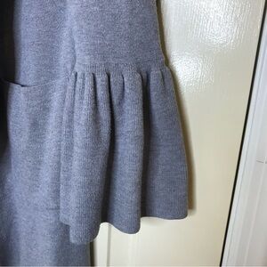 Fate Anastasia Size Small Ruffle Bell Sleeve Cardigan in Gray Open Front Pockets