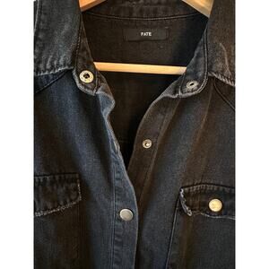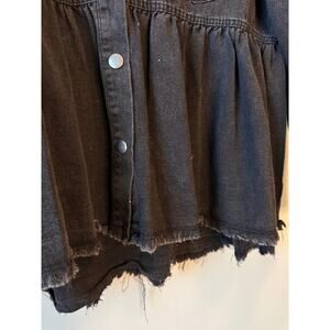 EUC Fate Black Distressed Denim Oversized Ruffle Bottom Jacket. No size tag, but it is a small. Cute to wear solo or layer up. KC