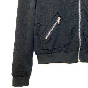 Fate | Black Zip Up Bomber Patchwork Jacket Medium