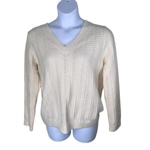 Fate Brand v Neck Cable Knit Sweater SIZE XL Off White