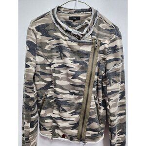 Stylish camouflage jacket by Fate. Features an asymmetrical zipper. Perfect for casual wear.