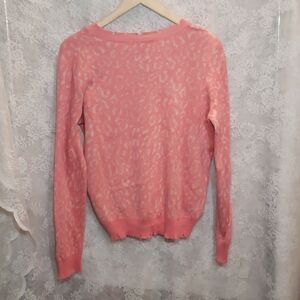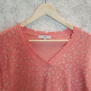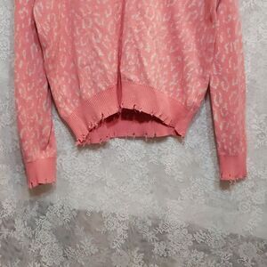 Fate Distressed Hemline Crew Neck Sweater Size Small Leopard Print Coral…