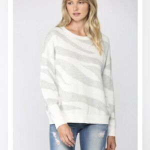 Fate Gray Zebra Animal Print Crewneck Sweater