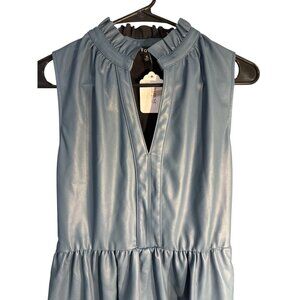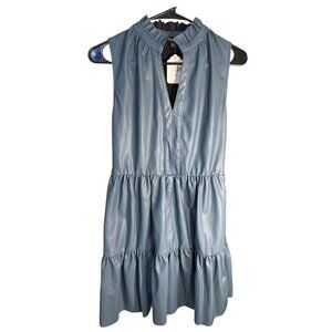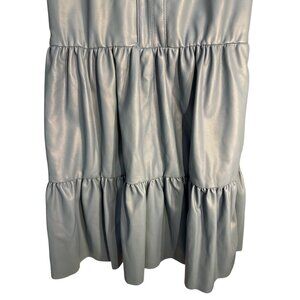 Fate Halter Tier Mini Faux Leather Ruffled Dress Steel Blue Size Small, NWT