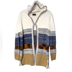 Fate Hooded Multicolor Hooded Single Clasp Open Cape Knit Cardigan Sweater Small