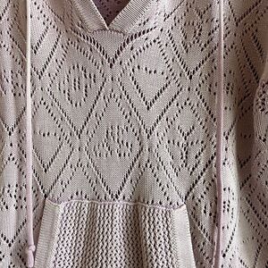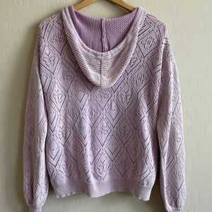 Fate Lavender Mineral Wash Open Knit Hooded Sweater
