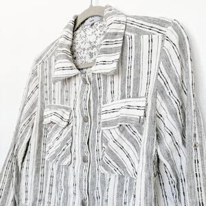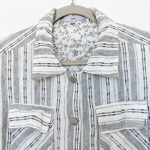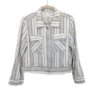 Fate Linen Patchwork Stripe Cropped Jacket White Black Size M Cottage Boho Lagom