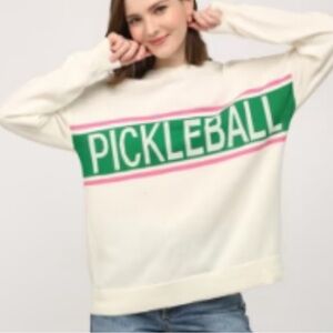 Fate Pickleball White Sweater with Green and Pink Accents Size Small