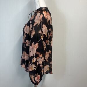 Fate Poet Blouse sz Small Black Brown Peach Floral Anthropologie Cottage Core #S