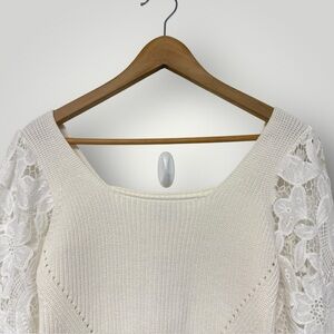 Fate RIBBED LACE TRIM FLOUNCE SLEEVE KNIT TOP Sz M