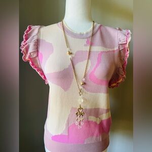 Fate Ruffle Short Sleeve Top- Pink Camo or Geo pattern. NWT, Small