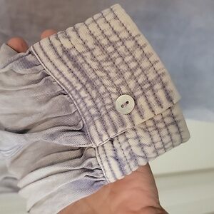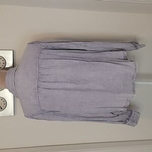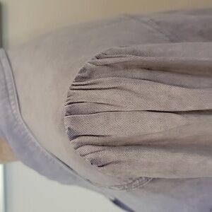 Fate, Size M, NWT "Washed Chambray Shirt" Light Purple. Fate's button-down shirt is covered in a faded wash and styled in a relaxed fit. In a light and breathable rayon, a gathered puff sleeve falls to quilted cuffs for a cute touch. Spread collar, Long sleeves, Buttoned cuffs, Button front, Two flap-button pockets. Super cute alone or over a cami or bandeau.