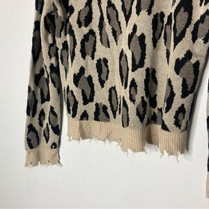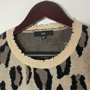 Fate Size Small Crewneck Distressed Frayed Hem Cuffs Plush Leopard Mob Wife