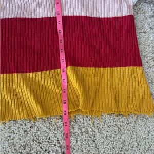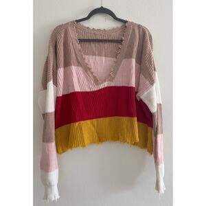 Fate Striped Distressed Raw Hem Low Back Sweater Large