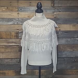 Fate Sweater Knit Chunky Beige Fringe Tassel Boho Western Size Small NWT