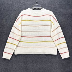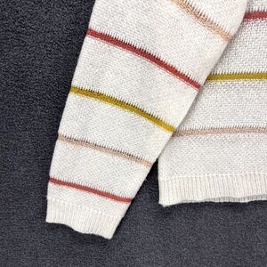 Fate Sweater Womens Large White Yellow Striped Knit Pullover soft crew neck