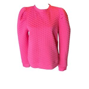 Fate Sweater Women’s Puff Sleeves Pink Thick Hem with V Design Size Small