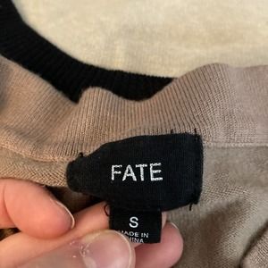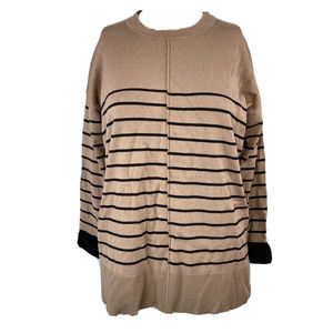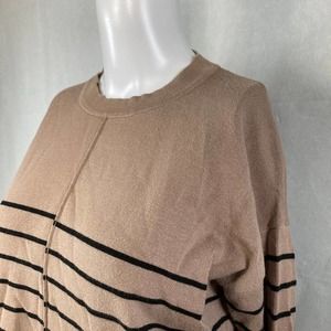Fate Sweater Womens Sz S Taupe Beige Black Striped Cotton Pullover Stretch