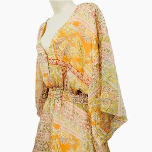 Fate The Label Size Large Smocked Waist Romper Peach Floral Paisley Patchwork Print
