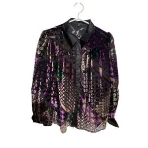 Fate Whimsigoth Velvet Burnout Art to Wear Womens size Small Old Money fairy Top Sheer Elegant Casual Office Career Feminine Dark Romantic