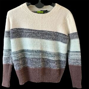 Keywords: Fate sweater, women's Pullover, multicolor knit, fall fashion, crew neck, long sleeve, casual wear, acrylic blend, nylon sweater, pre-owned, excellent condition, versatile sweater, women's fashion, knitwear, solid pattern.