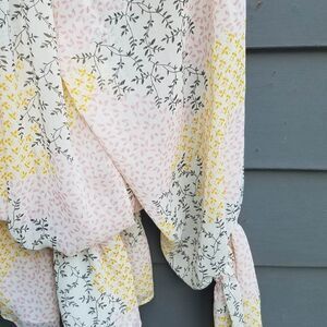 Fate Yellow Gray Pink Floral Boho Peasant Top size Small