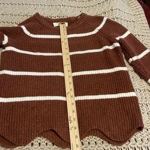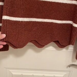 Fate long sleeve cropped wave hem Rust & white wide stripes sweater women’s sz S