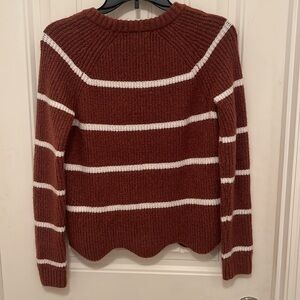 Fate long sleeve cropped wave hem Rust & white wide stripes sweater women’s sz S gorgeous cushion knit sweater with amazing color!